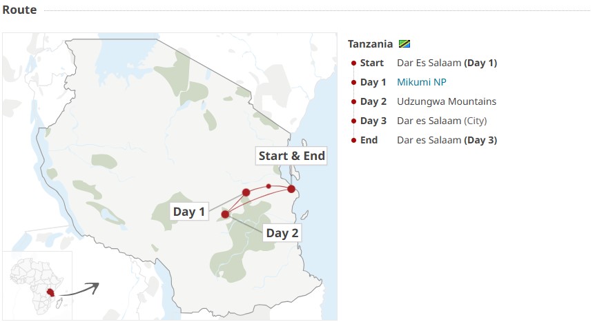 Dar es Salaam, Mikumi, Morogoro, Udzungwa Mt