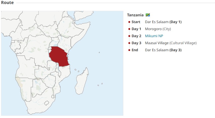 This magnificent 3-day safari will take you to the finest locations in Tanzania. Mikumi National Park, hiking the Uluguru Mountains, Choma Waterfalls, and lastly you are going to enjoy an outlandish Maasai village visit to learn about the Maasai warriors tribe. You will have the chance to observe various species of animals on game drives in Mikumi. Exclusively the tour will furnish you with mixed experiences of wildlife safari as well as hiking and culture in a very short time.