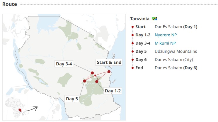 This 6-day safari in Selous Nyerere, Mikumi, and Udzungwa Mountain Safari, is probably the only classic safari to the southern circuit of Tanzania. Starting and ending at Dar es Salaam, this safari takes you to the greater Selous ecosystem and gives you the rare chance to experience real African wilderness in the few untouched areas of Tanzania. This safari allows you to be in the secluded middle of an African wilderness with the whole savannah almost for your own.